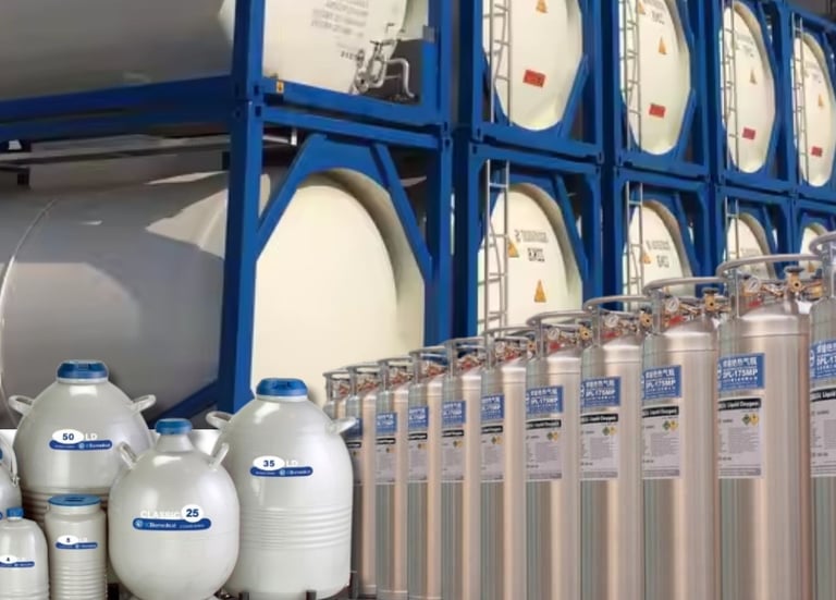 Liquid Nitrogen is an ultra-cold, inert cryogenic fluid (−196°C) widely used across industries for its rapid freezing and cooling capabilities.
